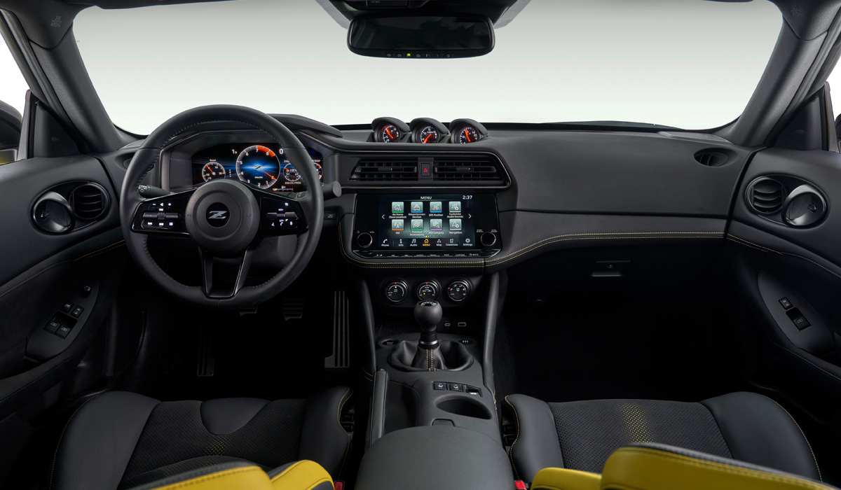 Напомним, что премьера Nissan Z состоялась в августе 2021 г. Габариты 2-местного суперкара: длина — 4 379 мм, ширина — 1 844 мм, высота — 1 316 мм, база — 2 550 мм. Клиренс типичен для автомобилей такого класса — 122 мм.