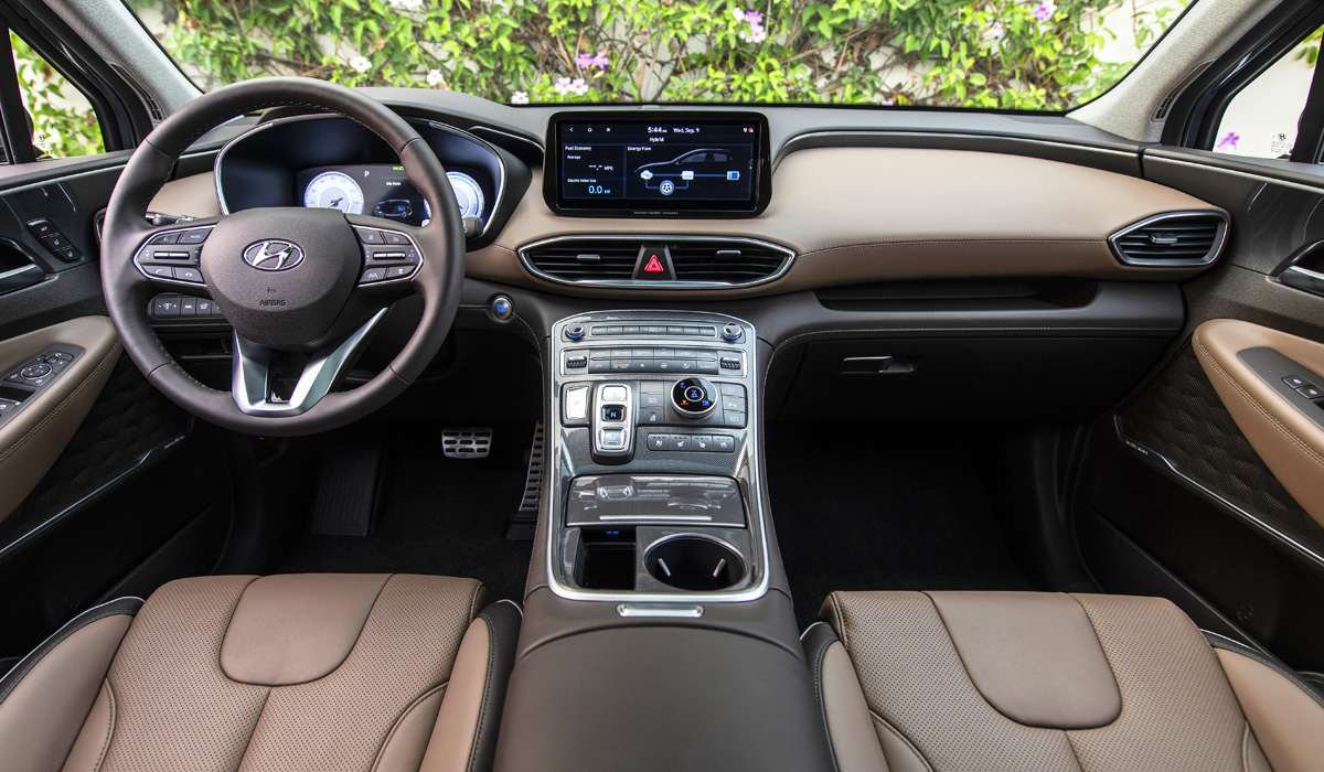 В перечне штатного оснащения Hyundai Santa Fe Prime имеется всё, что полагается премиальному автомобилю из Южной Кореи. Там, например, есть 2-зонный климат-контроль, передние кресла с обогревом и вентиляцией, цифровая «приборка», усовершенствованная мультимедийная система с навигатором, премиальная «акустика» и много чего другого.