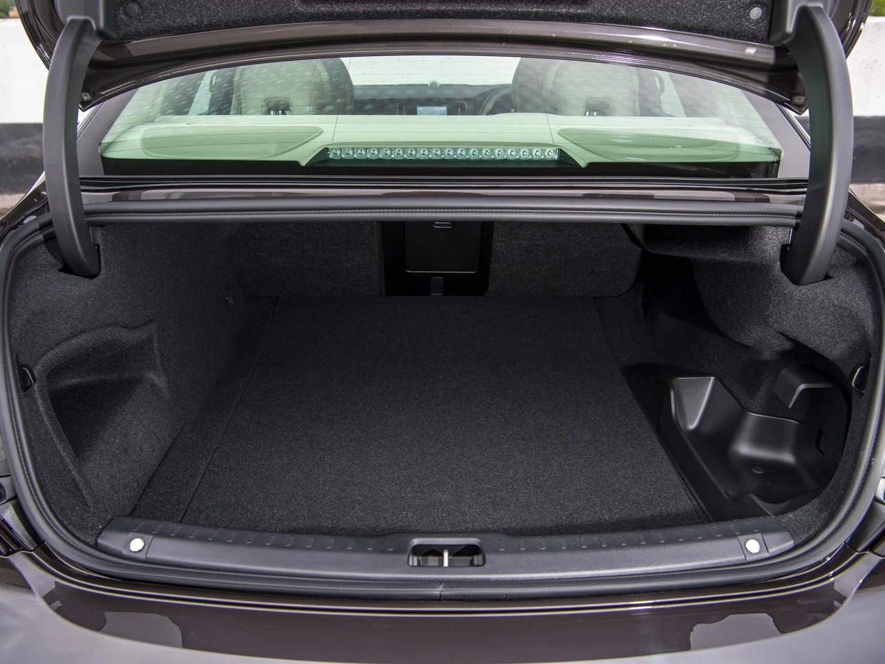 Габариты седана: длина — 4 969 мм, ширина — 1 879 мм, высота — 1 446 мм, база — 2 941 мм. Объём багажника маловат для таких размеров — всего 461 л. Клиренс в 152 мм пригоден только для дорог с очень хорошим покрытием.