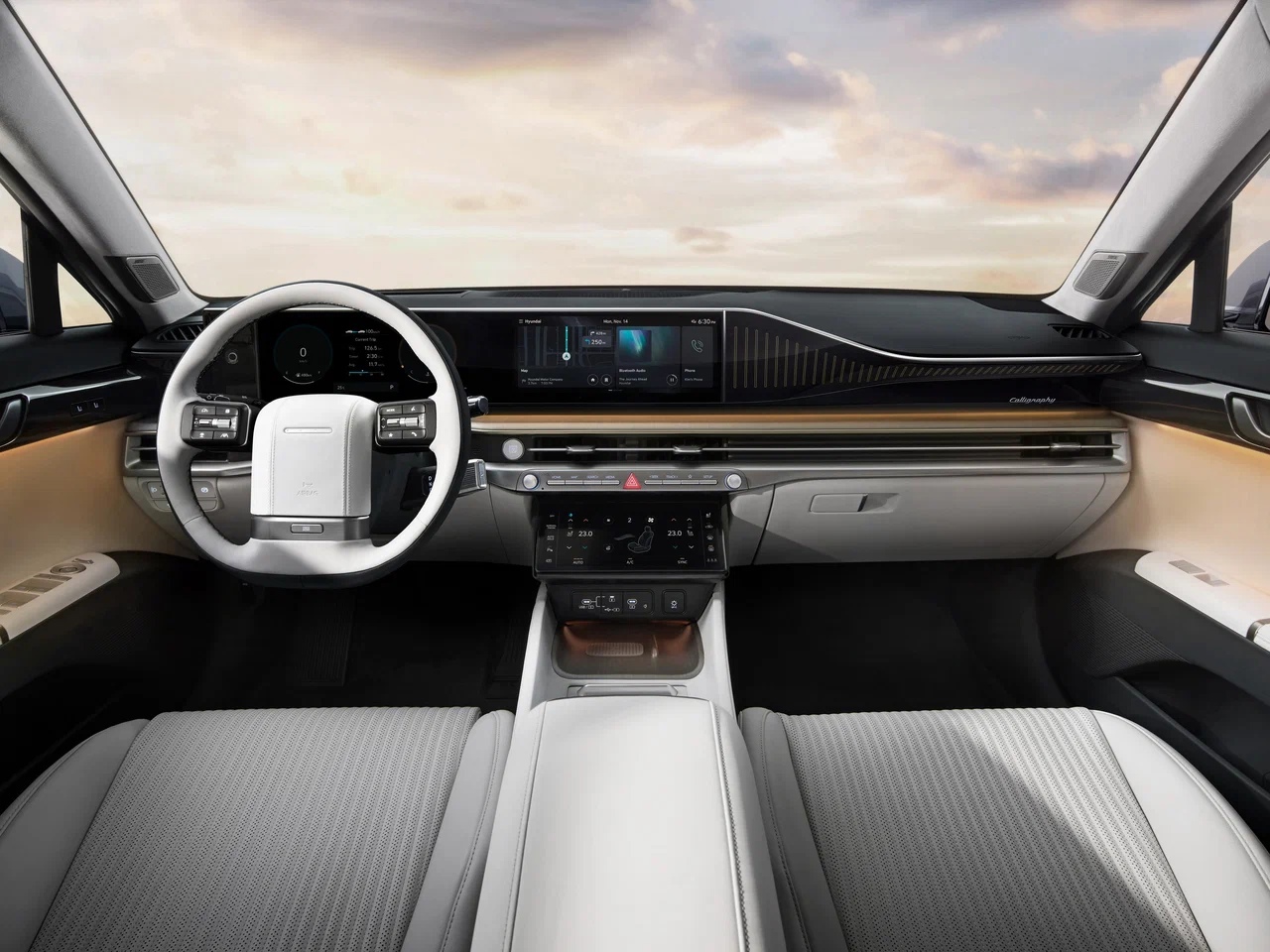 Кроме того, автомобиль получил цифровую «приборку» диагональю в 12,3 дюйма, мультимедийную систему с тачскрином такого же размера и навигатором, сканер отпечатка пальца, по которому электроника распознает водителя для того, чтобы загрузить его персональные настройки, а также 2-зонный климат-контроль с фотокаталитической стерилизацией воздуха и сенсорным пультом управления диагональю в 10,25 дюйма.