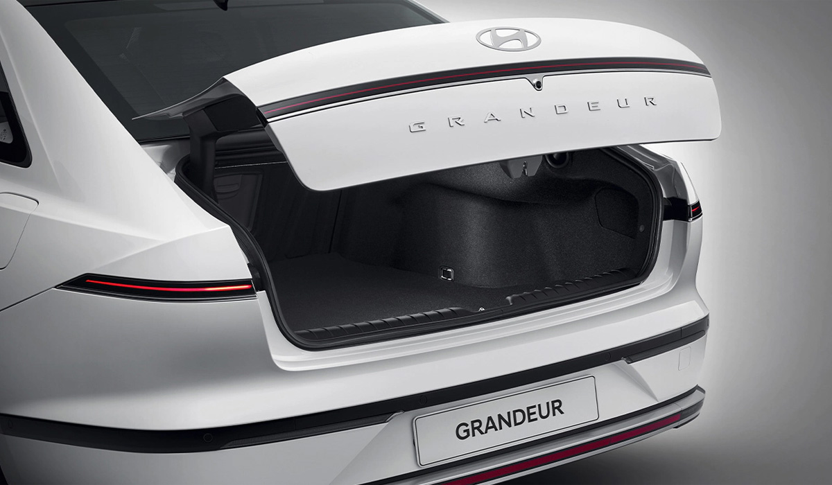 Список штатного оснащения Hyundai Grandeur — богатейший. В нём, например, значатся безрамочные двери с 2-слойными стёклами и выдвижными ручками, а также адаптивная подвеска с фронтальной камерой, которая сканирует поверхность дороги — на основе данных, полученных камерой, электроника меняет жёсткость амортизаторов.