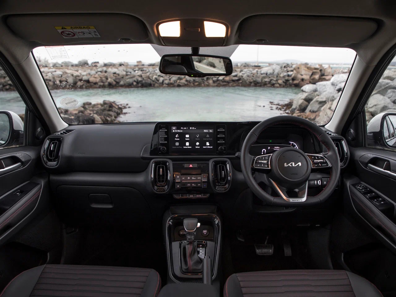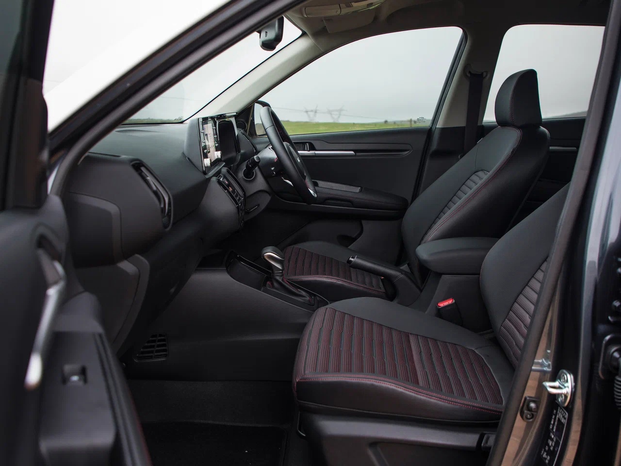 Габариты KIA Sonet: длина — 3 995 мм, ширина — 1 790 мм, высота — 1 642 мм, база — 2 500 мм. Объём багажника соответствует скромным размерам машины — 392 л. при поднятых задних сиденьях. А вот клиренс приятно радует — 211 мм, но путь на бездорожье кроссоверу заказан из-за отсутствия системы полного привода во всех комплектациях.