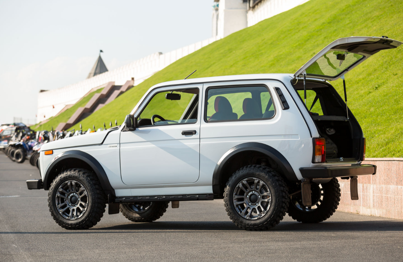 От превратностей бездорожья кузов автомобиля защищают массивные расширители колёсных арок и боковые отбойники