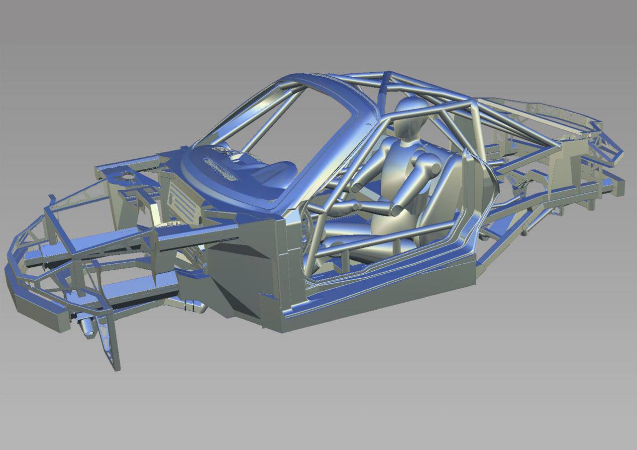 В отличие от родстера, имеющего открытый верх, гоночный болид имеет мощный силовой каркас, изготовленный из стальных труб круглого сечения. Каким будет силовой агрегат нового автомобиля, пока неизвестно.