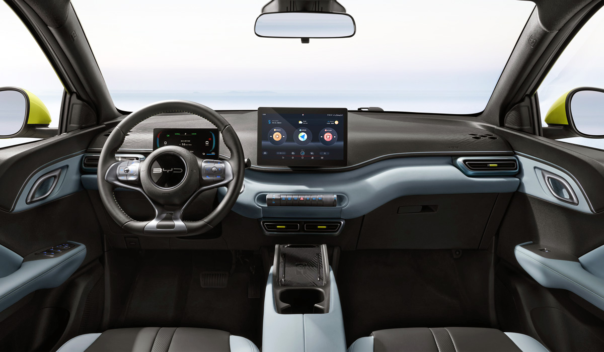 В перечне штатного оснащения BYD Seagull значатся: цифровая «приборка» диагональю в 5 дюймов, кондиционер, наружные зеркала с электрорегулировкой и обогревом, беспроводная зарядка для смартфона, а также мультимедийная система с тачскрином диагональю в 10,1 дюйма.