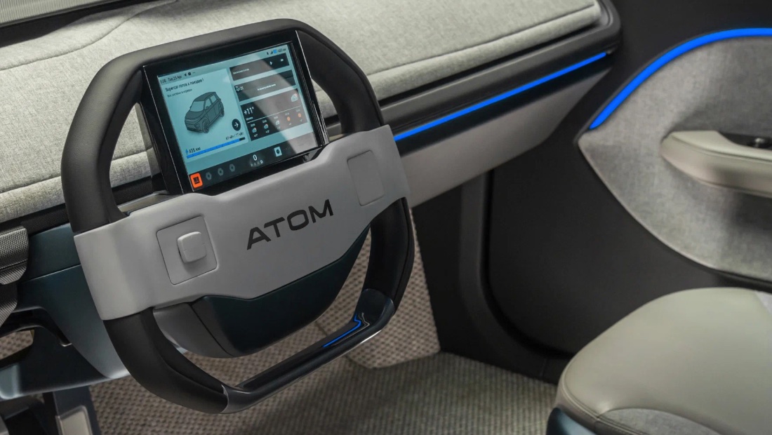 Электромобиль «Атом» получит руль со встроенным дисплеем — он будет единственным