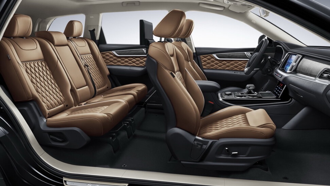 Интерьер автомобиля прекрасно сочетает роскошь и комфорт. Сиденья и обивка дверных карт изготовлены из высококачественной кожи Nappa с ромбовидной стежкой. Передние и задние сиденья оборудованы системой подогрева и вентиляции с тремя уровнями интенсивности. Потолок автомобиля отделан замшей алькантара, а яркие декоративные вставки выполнены из массива натурального дерева.