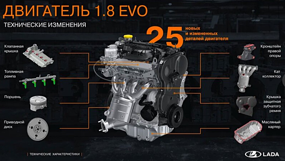 Редакция «Южного автомобиля» собрала первые подробности об этом обновленном двигателе. Одним из ключевых нововведений является использование новой поршневой группы, которая предотвращает контакт с клапанами при обрыве ремня ГРМ. Ранее такие "безвтыковые" поршни были применены во всех двигателях объёмом 1,6 литра, а теперь они появились и в двигателе 1.8 EVO.