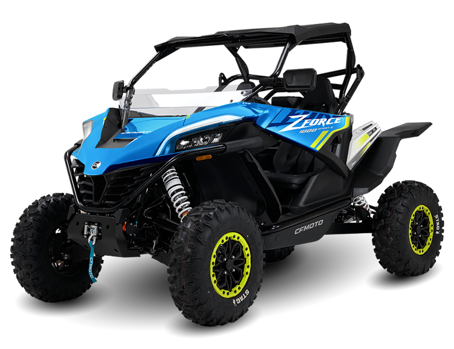 - ZFORCE 1000 Sport R EPS. Это двухместный транспорт, в котором присутствуют спортивные сиденья, амортизаторы. Багги движется со скоростью до 120 км/ч, поэтому его выбирают для путешествий по бездорожью. В представленной модели все сделано для комфорта: присутствуют двери, ветровое стекло, съемная крыша. Кабина вместительная, отличается низкой посадкой, оснащена дисплеем. Поэтому транспортное средство идеально для длительных поездок.