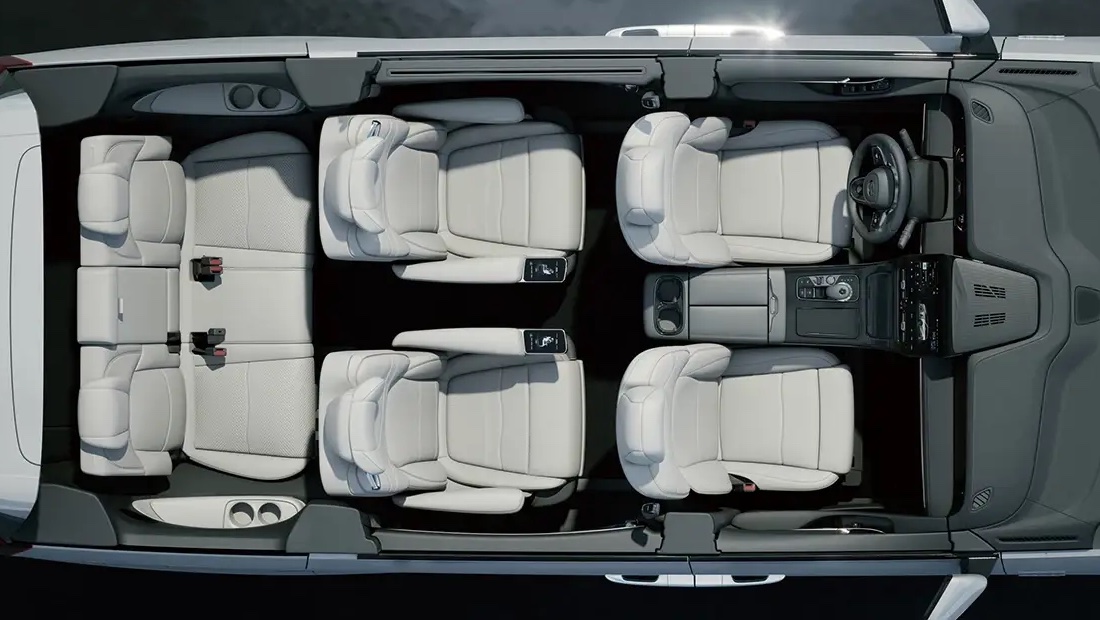 В салоне M8 находятся семь мест в расположении «2 + 2 + 3». На втором ряду установлены два капитанских кресла с интегрированными воздушными камерами для массажа спины, плеч и бёдер. Пассажиры также смогут воспользоваться интеллектуальной системой управления климатом, электронными настройками сидений и складными столиками. Есть выдвижные оттоманки с электроприводом для дополнительного комфорта.