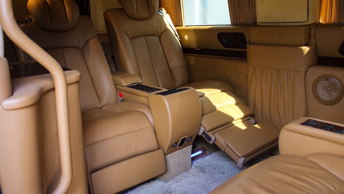 Салон бронированного автомобиля выглядит роскошно, хотя спереди это может быть не очевидно, так как кресла водителя и переднего пассажира обычные. Однако на задних сиденьях установлены мультиконтурные сиденья с подставками для ног и широким спектром электрорегулировок. Также в салоне есть телевизор, который свисает со стеки. Хотя электроника может быть немного устаревшей, состояние автомобиля соответствует его пробегу.