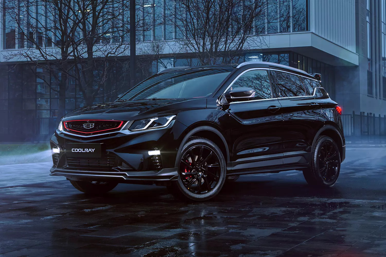 Цветовое решение в стиле красного и черного подчеркивает характер Coolray, символизируя его скорость, мощь и эстетическую привлекательность.