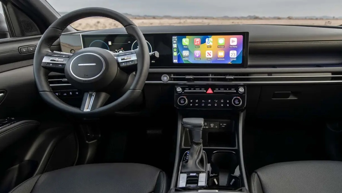 Также добавлены физические кнопки для управления аудио и климат-контролем, а новый руль в стиле Tucson придает интерьеру обновленный вид.