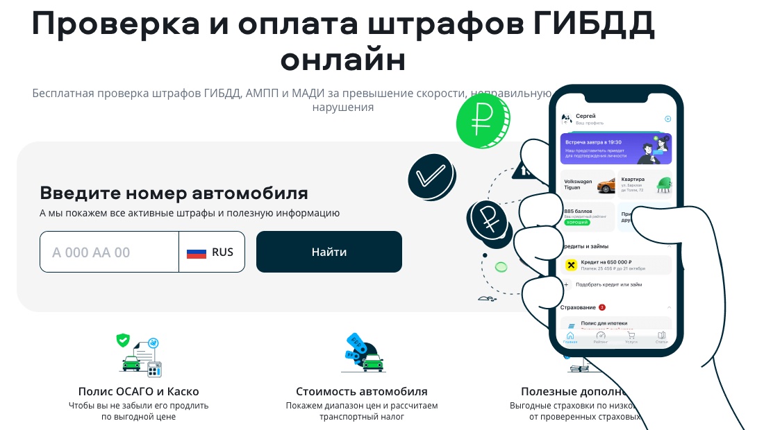 Главная задача сервиса — дать автовладельцам актуальную информацию обо всех имеющихся у них штрафах ГИБДД. Для этого он интегрирован с официальными базами данных ГИБДД, ГИС ГМП (Государственной информационной системы о государственных и муниципальных платежах) и ФССП (Федеральной службы судебных приставов).