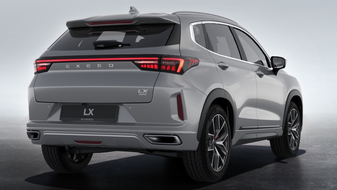 Внешне EXEED LX выделяется фирменной радиаторной решёткой с интегрированной светодиодной оптикой, рельефным капотом и мускулистыми колесными арками. Благодаря компактным размерам (4520×1848×1669) машина отлично маневрирует в городских условиях.