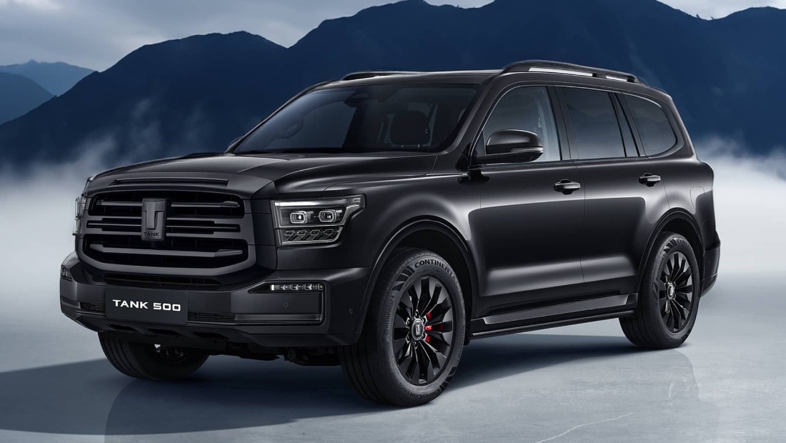 Этот автомобиль отличается еще более внушительными размерами и брутальным дизайном экстерьера, визуально напоминающим военные вездеходы. Под массивным кузовом TANK 500 скрывается мощное техническое «оснащение».