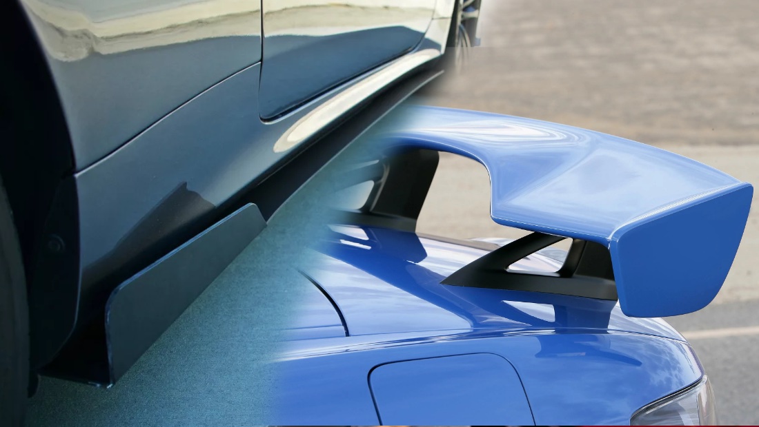 Установка спойлеров, крыльев и юбок не только улучшает внешний вид, но и влияет на аэродинамические характеристики, что улучшает управляемость и стабильность автомобиля на высоких скоростях. Правда, стоит помнить о том, что установка этих элементов также регулируется законом. Если всё это не предусмотрено конструкцией машины и не предлагается самим производителем, то нужно получить разрешение в ГИБДД, а после получить соответствующую регистрацию изменений.