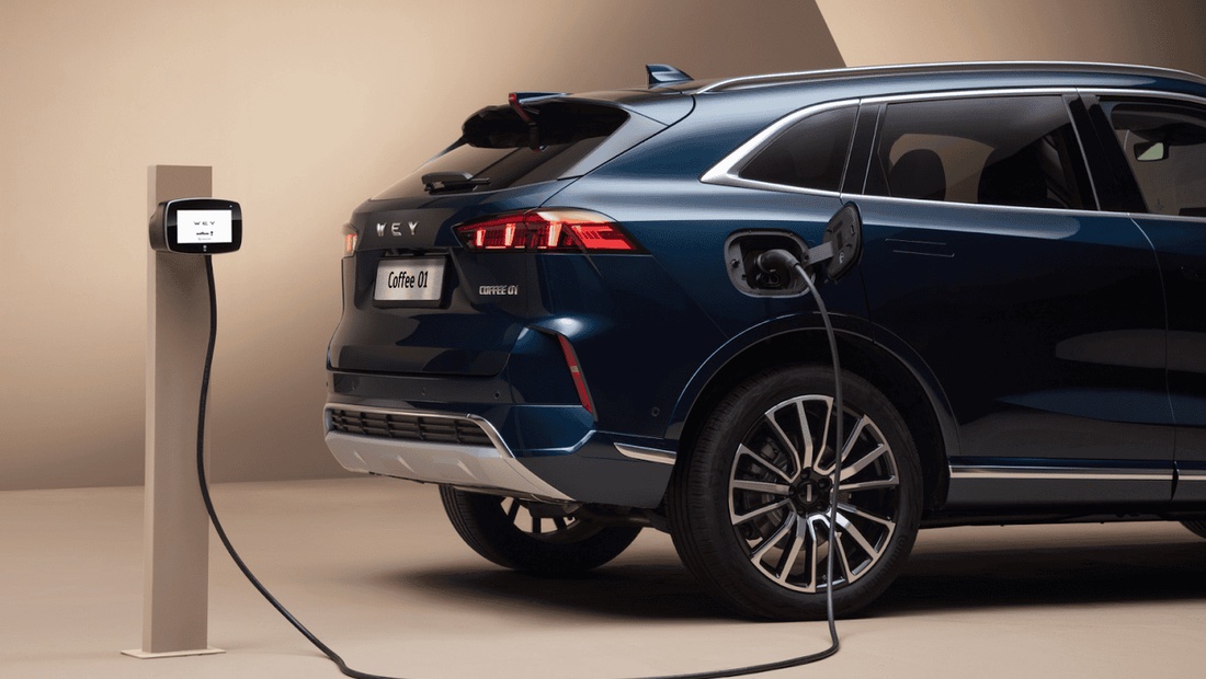 WEY 05 имеет возможность подзарядки от сети, на чистом электричестве кроссовер может проехать до 185 км, а общий запас хода — 864 км.