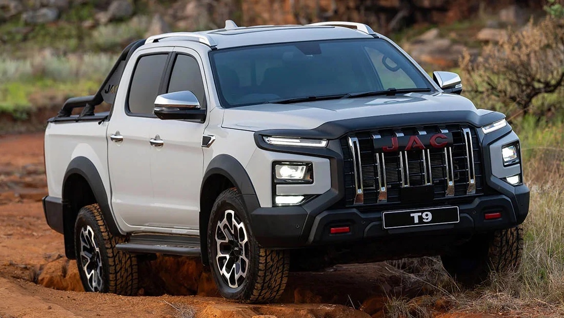 Пикапов на российском рынке не так много — JAC T9 теперь один из тех, что доступен у нас для поклонников этого типа машин. Начнём с того, что это рамный надёжный пикап, внешний вид которого отличает, как и положено, массивная решетка радиатора, узнаваемая по тяжёлым вертикальным линиям.