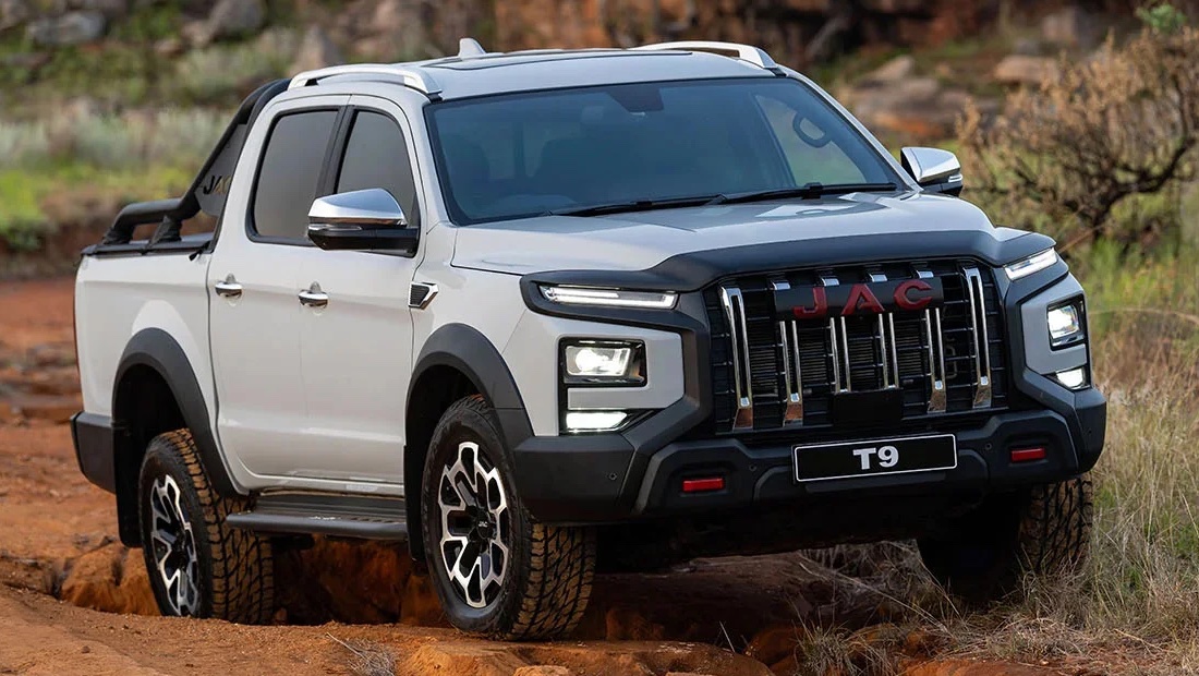На российском рынке не так много пикапов, и JAC T9 выделяется среди них своим надежным рамным кузовом и характерным дизайном с массивной решеткой радиатора с вертикальным узором. Также доступны современная светодиодная оптика и широкий набор опций, включая пластиковые расширители арок и металлические подножки.