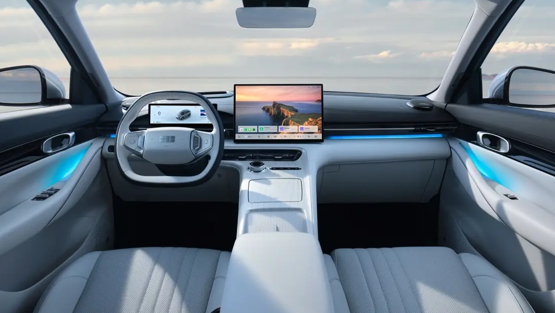 В состав базовой комплектации уже входят «зимний пакет», 18-дюймовые легкосплавные диски, заводская тонировка задних стекол, светодиодные фары, активные жалюзи радиатора, скрытые дверные ручки с электроприводом, бесключевой доступ, кожаный руль, 15,4-дюймовый сенсорный экран мультимедийной системы с функцией дублирования экрана смартфона и поддержкой Bluetooth, а также 10,2-дюймовая цифровая панель инструментов.