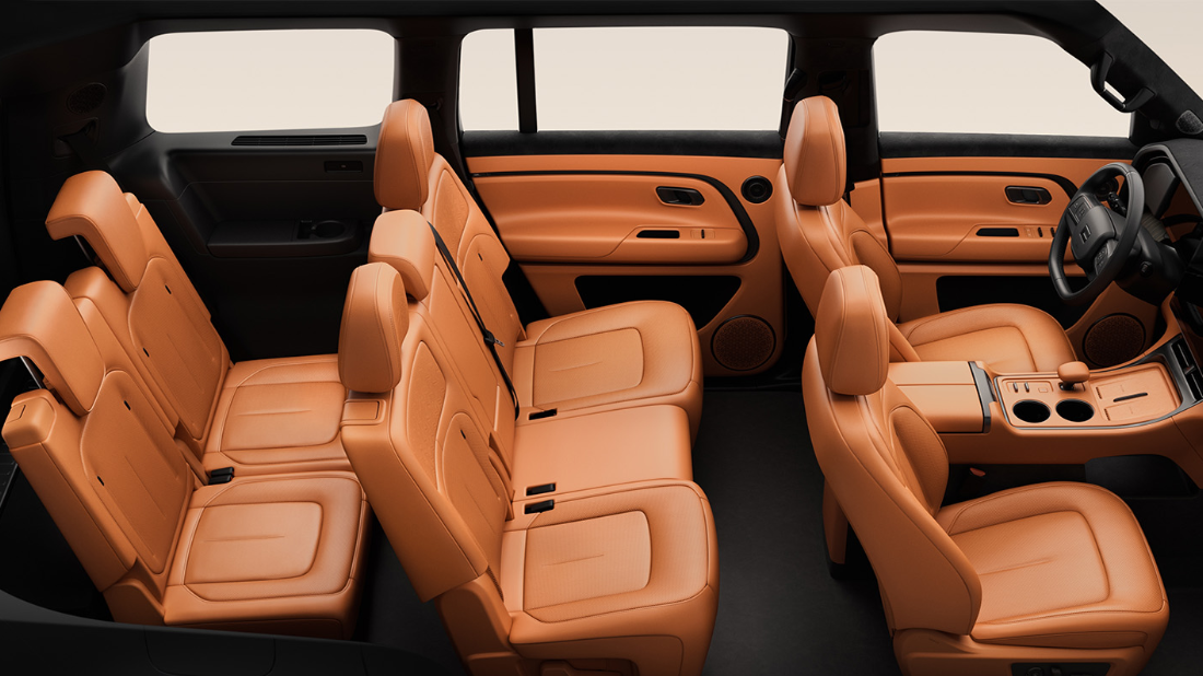 Ну и Business Edition выполнена в 6‑местной компоновке 2+2+2. На втором ряду стоят раздельные капитанские кресла с оттоманками, на третьем — двухместный диван; доступен расширенный массаж и режим «нулевой гравитации» для раскладывания кресел.