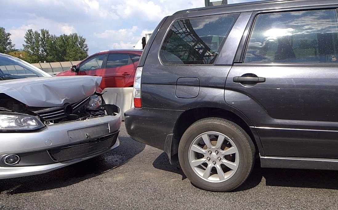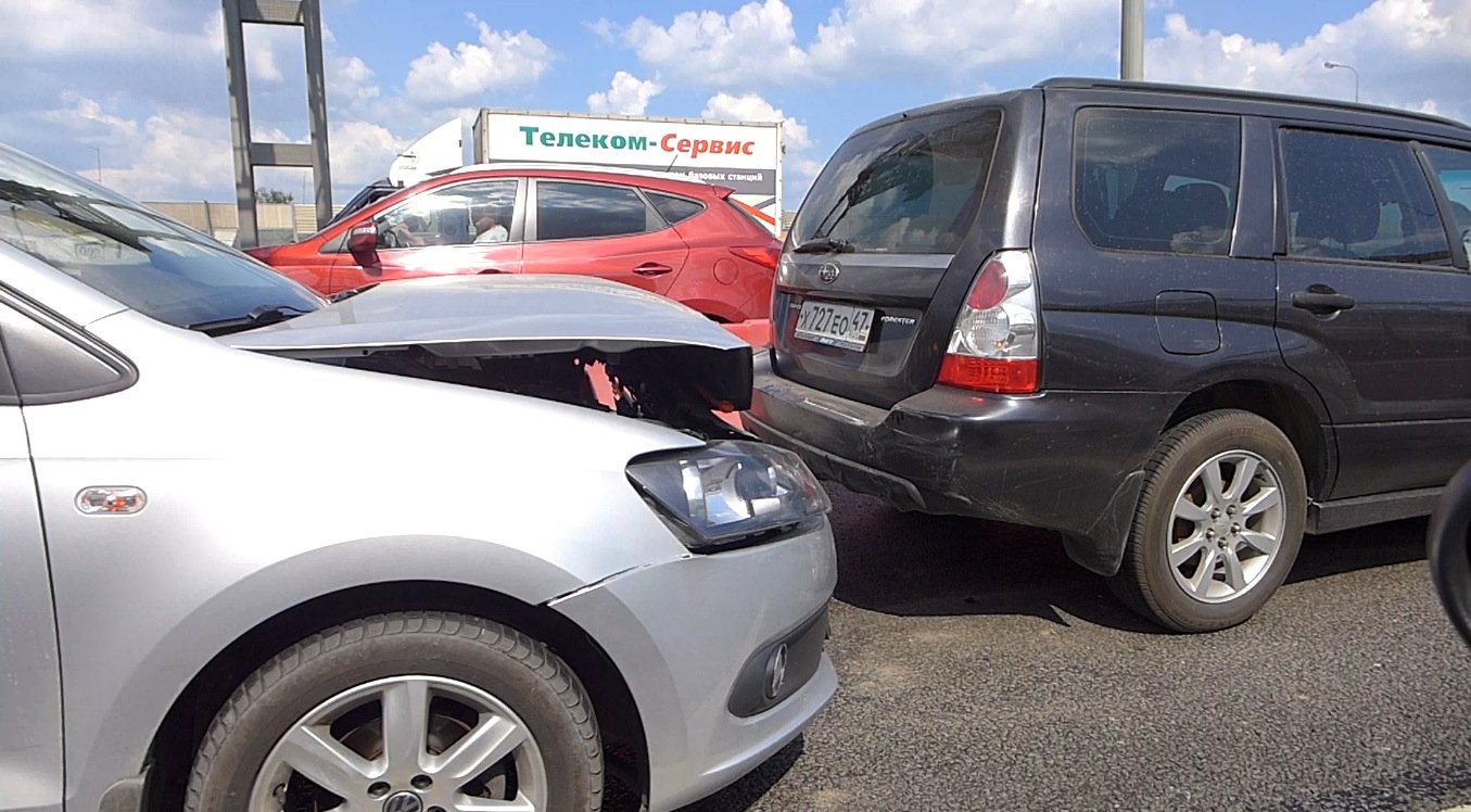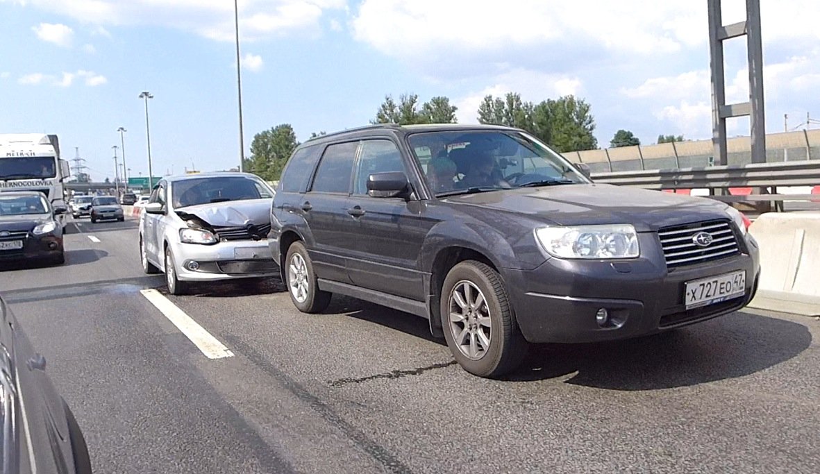 Водитель автомобиля Volkswagen Polo не смог выдержать безопасной дистанции и врезался в заднюю часть кроссовера "Субару Форестер" на Кольцевой автодороге на участке, где производились ремонтные работы (внутренний диаметр).