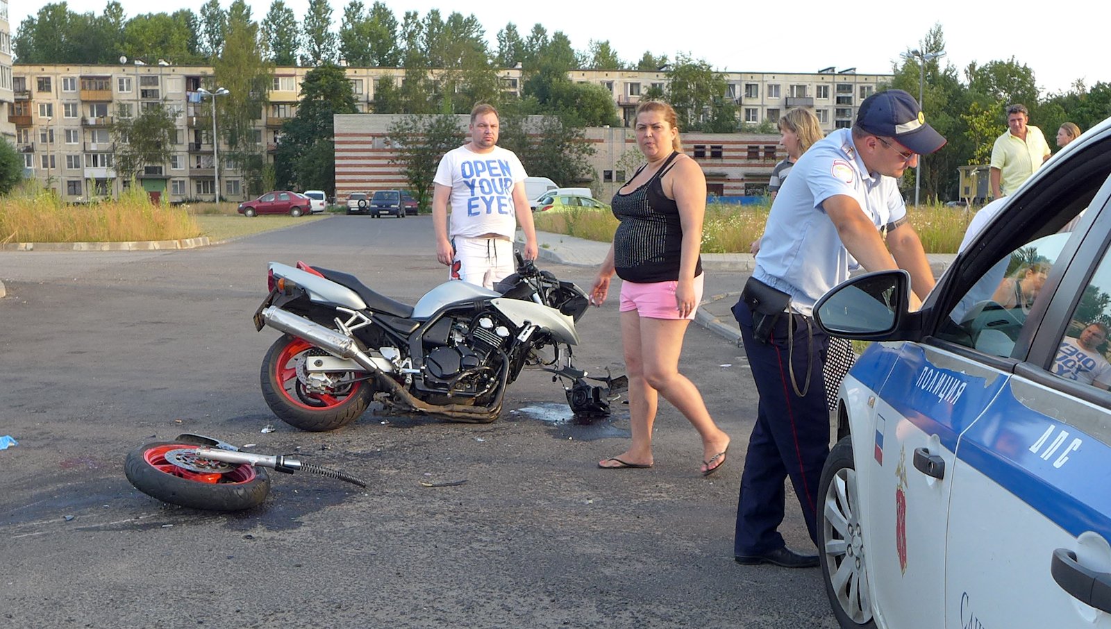 От удара у минивэна Ford C-Max оказались разбитыми боковые окна, раскрылись подушки безопасности. Водитель машины не пострадала, чего не скажешь о мотоциклисте, который был госпитализирован с места аварии в неизвестном состоянии. У мотоцикла от удара оторвалось переднее колесо с вилкой. Подробности выясняет на месте аварии наряд местного ГИБДД.