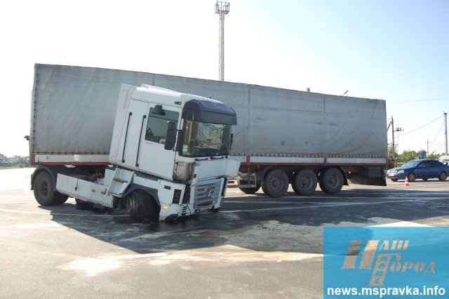 Около полуночи 4-ого августа грузовая фура (тягач Renault) не останавливаясь врезалась в заградительный бетонный модуль на блок-посту Южный в городе Мелитополь.
