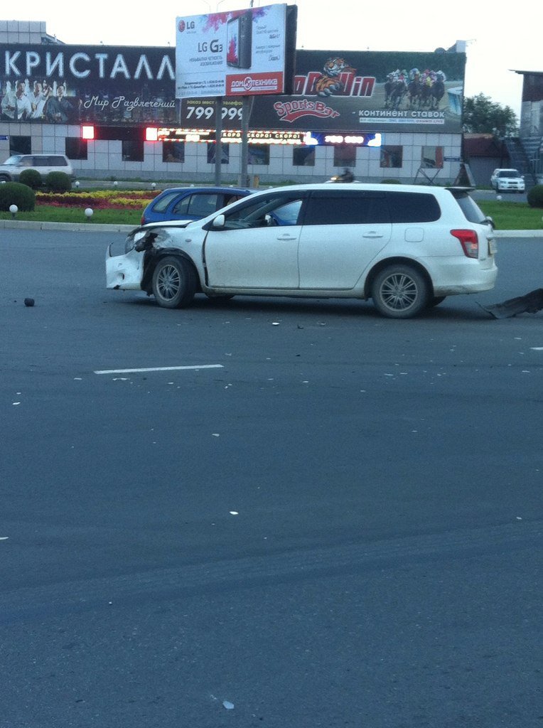 Водитель праворульного Toyota Gaia неожиданно для других участников дорожного движения, проехал круговое движение под знак "Кирпич" по прямой и столкнулся с другой "Тойотой" марки Corolla Fielder.