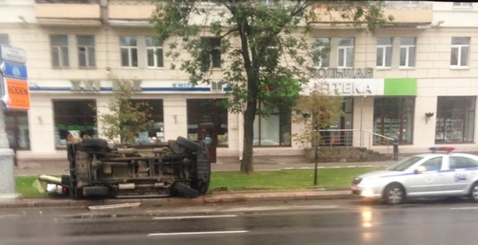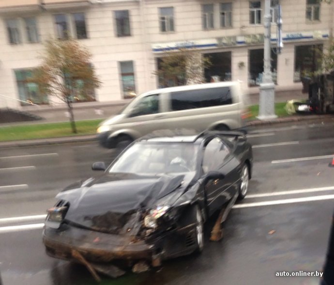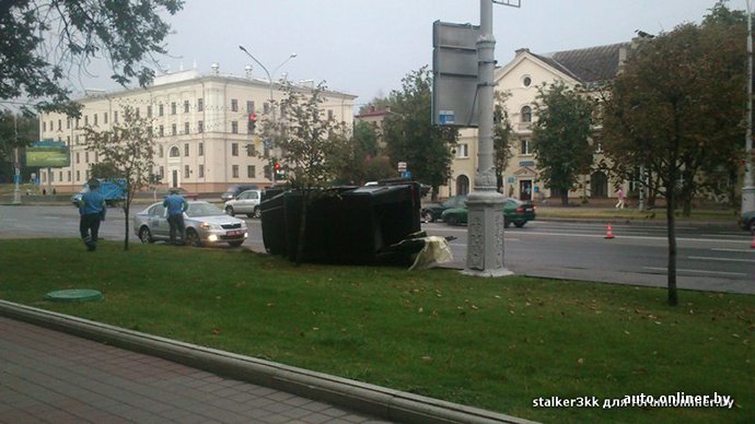 По счастью Mercedes-Benz не врезался в осветительный столб, который был у него на пути. Авария случилась рано утром в Минске на проспекте Независимости. По словам очевидцев столкновение случилось при попытке водителя внедорожника совершить разворот.