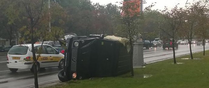 Гелендваген почему то был без номерных знаков и с сильно затонироваными стеклами. Как пишет auto.onliner.by, в аварии по карйней мере два человека получили травмы.
