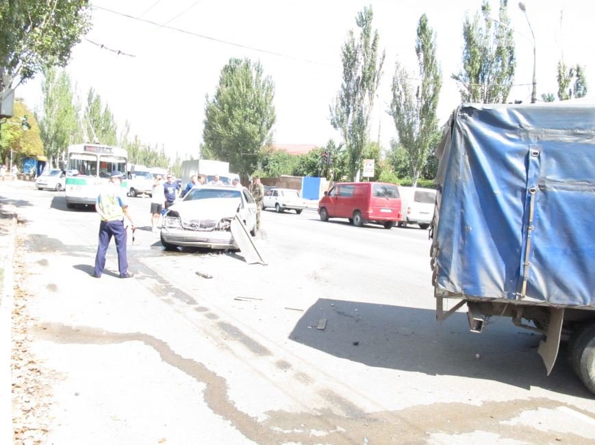 Маневр разворота грузовой Газели оказался печальным для ехавшего здесь-же автомобиля Mercedes-Benz S_Classe W140, по счастью, никто не пострадал.
