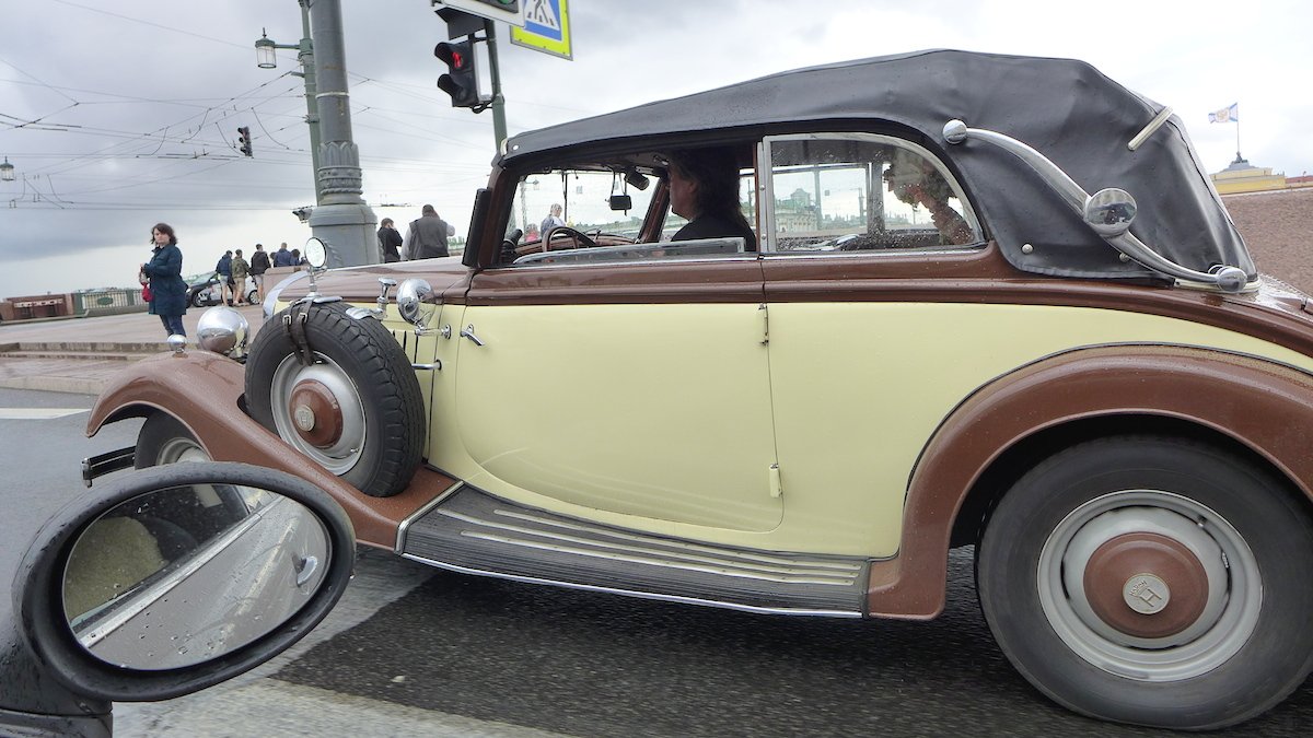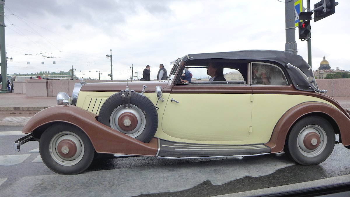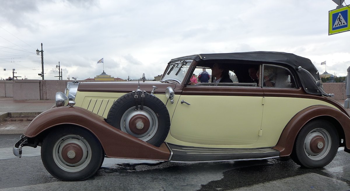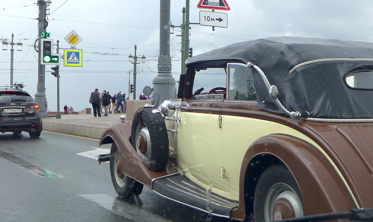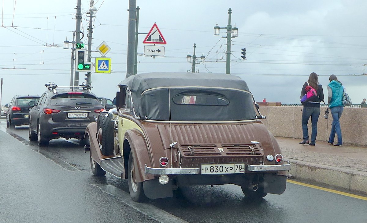 Снято на Дворцовом мосту в Петербурге. Ездящий экземпляр во всей своей ретро-красе. Точная модификация неизвестна. Судя по всему автомобиль преимущественно используется в качестве шикарного транспортного средства в церемониальных случаях, например на свадьбах.