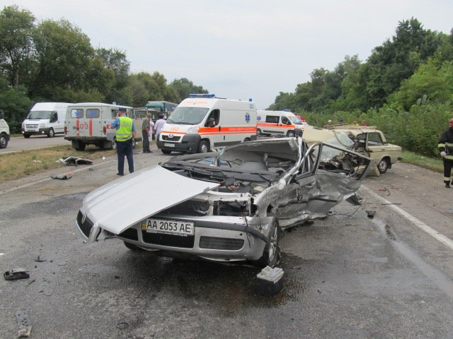 27 августа на трассе Киев Одесса (77-км) водитель легкового автомобиля "Шкода Октавия" допустил выезд на полосу встречного движения и совершил столкновение с двумя ехавшими здесь автомобилями: ВАЗ 2106 и микроавтобусом Mercedes-Benz Sprinter.