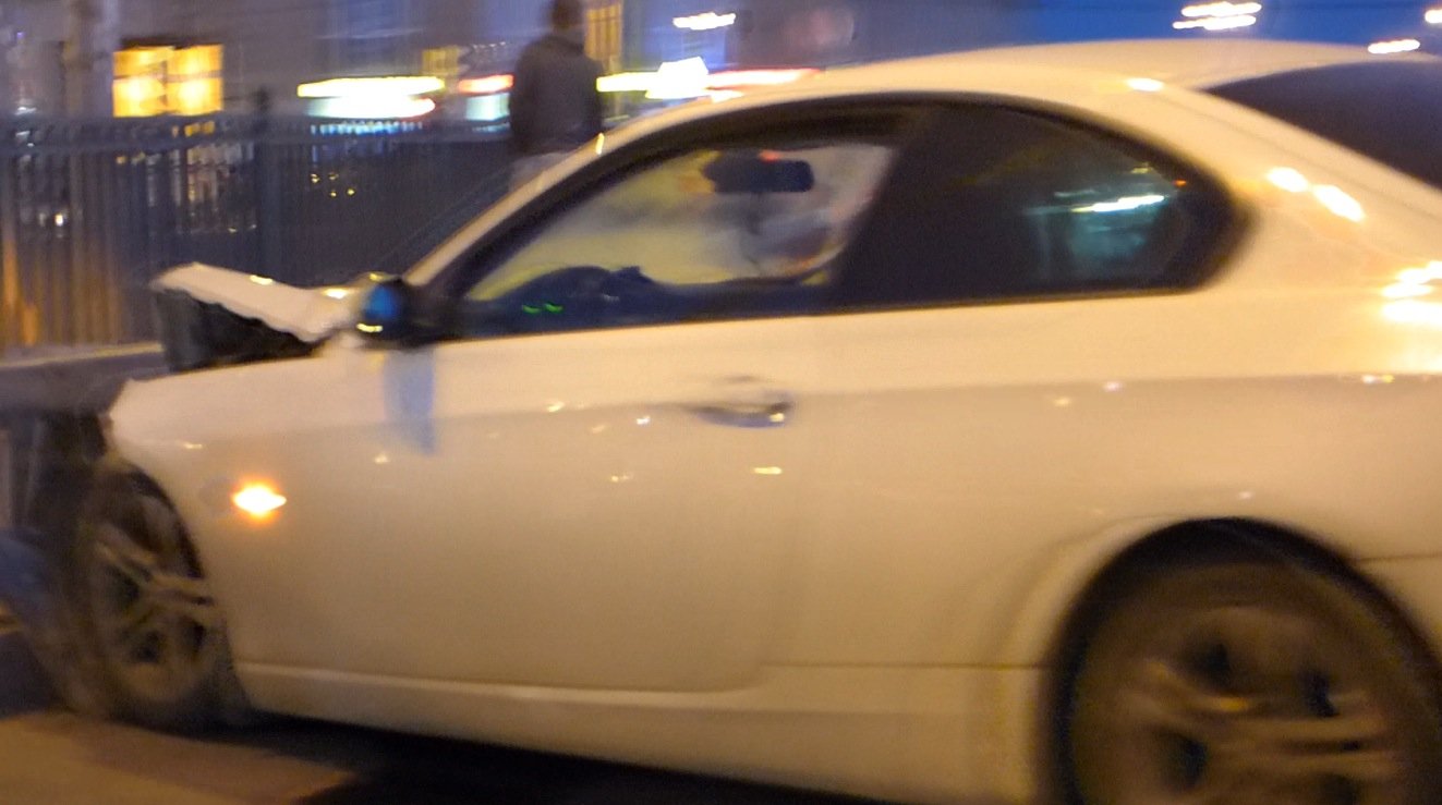 Вечером в субботу на набережной Обводного канала на повороте на Митрофаньевское шоссе произошло крупное ДТП - столкновение автомобилей BMW 3 Coupe и хэтчбэка KIA. Обе машины получили серьезные повреждения передних частей кузова, что указывает на фронтальный удар (лобовое столкновение).