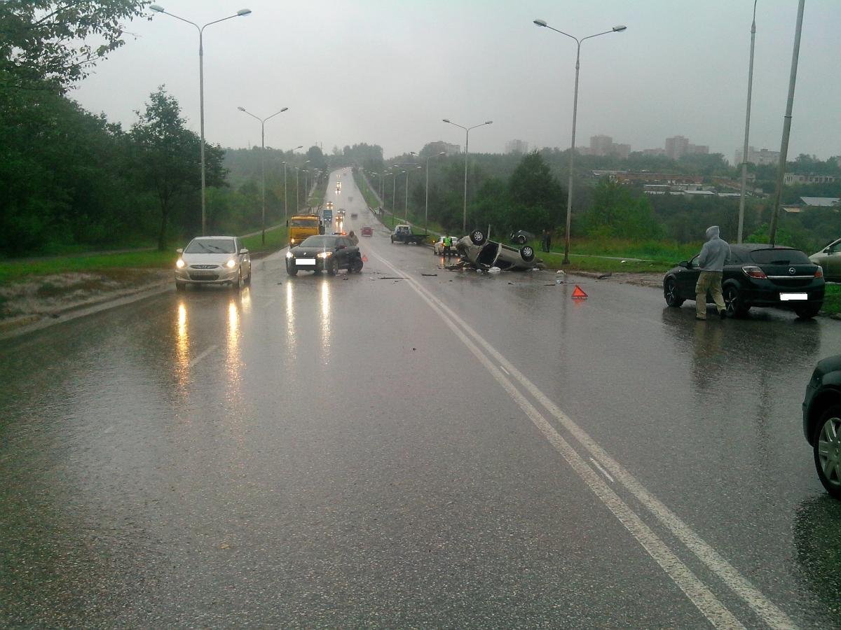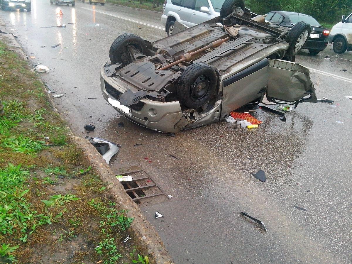 Два "Рено" столкнулись в Перми, один из них перевернулся на крышу