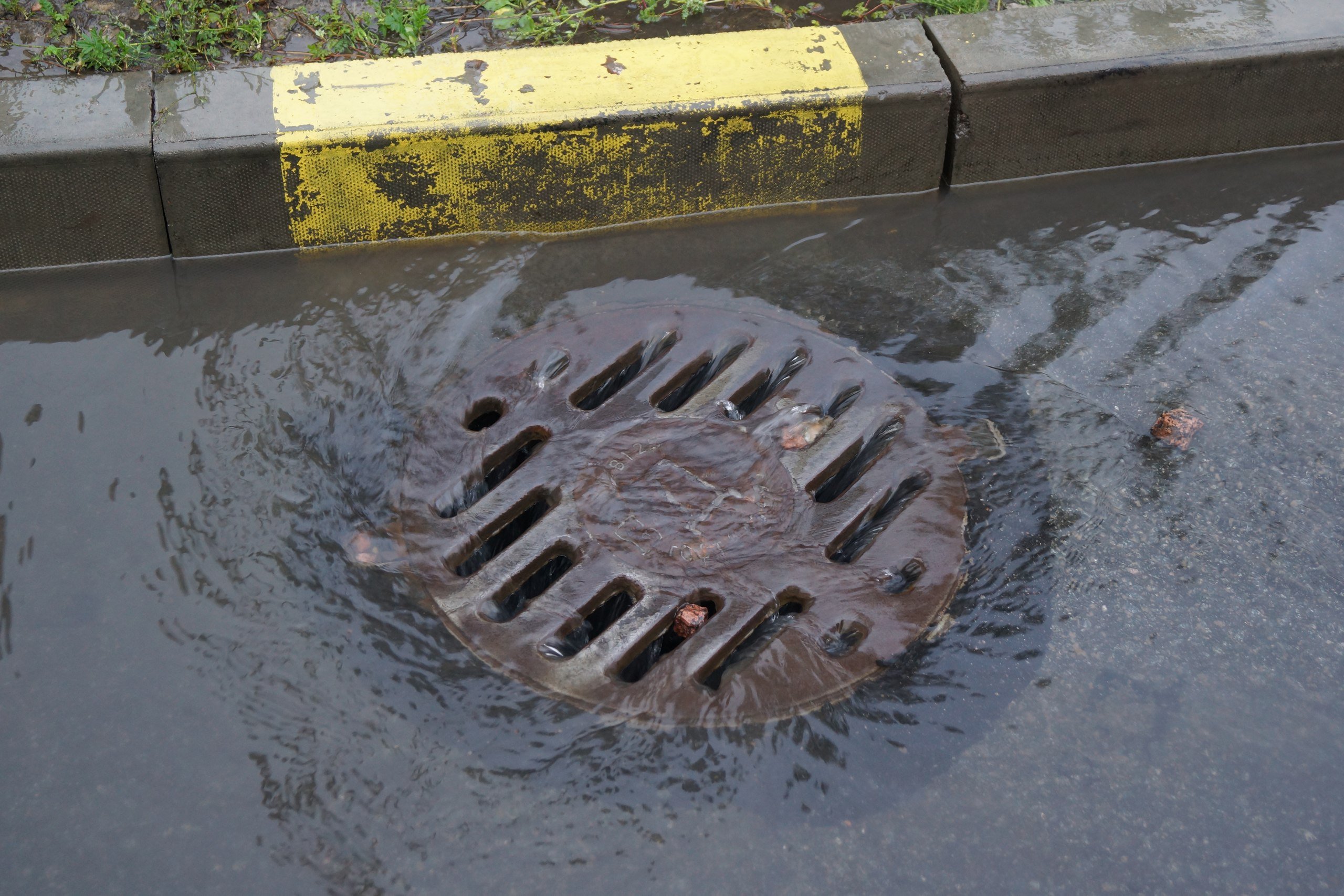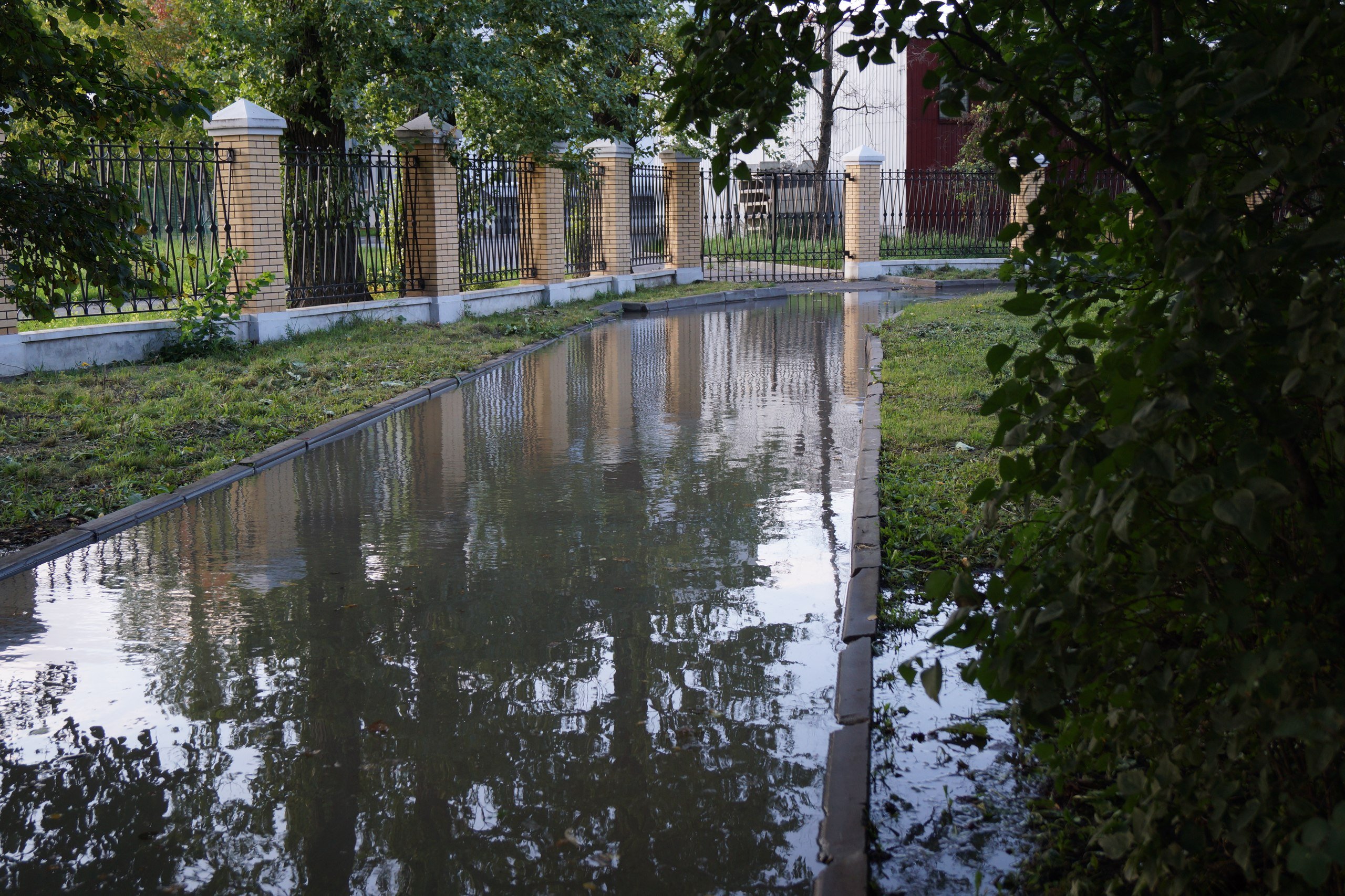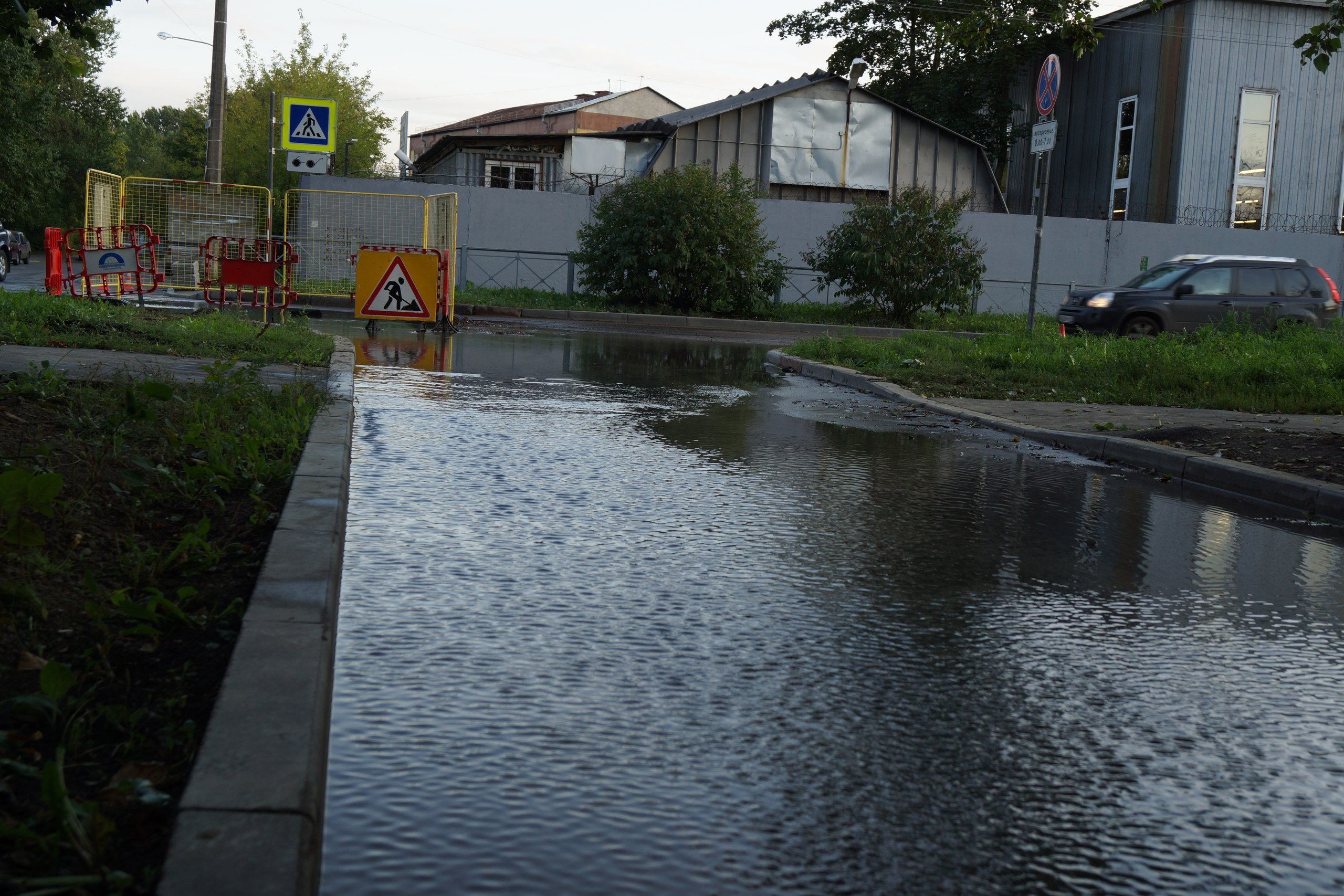 Утро 4 сентября 2014, работы не ведутся, улица вышла из берегов, канализация не справляется...