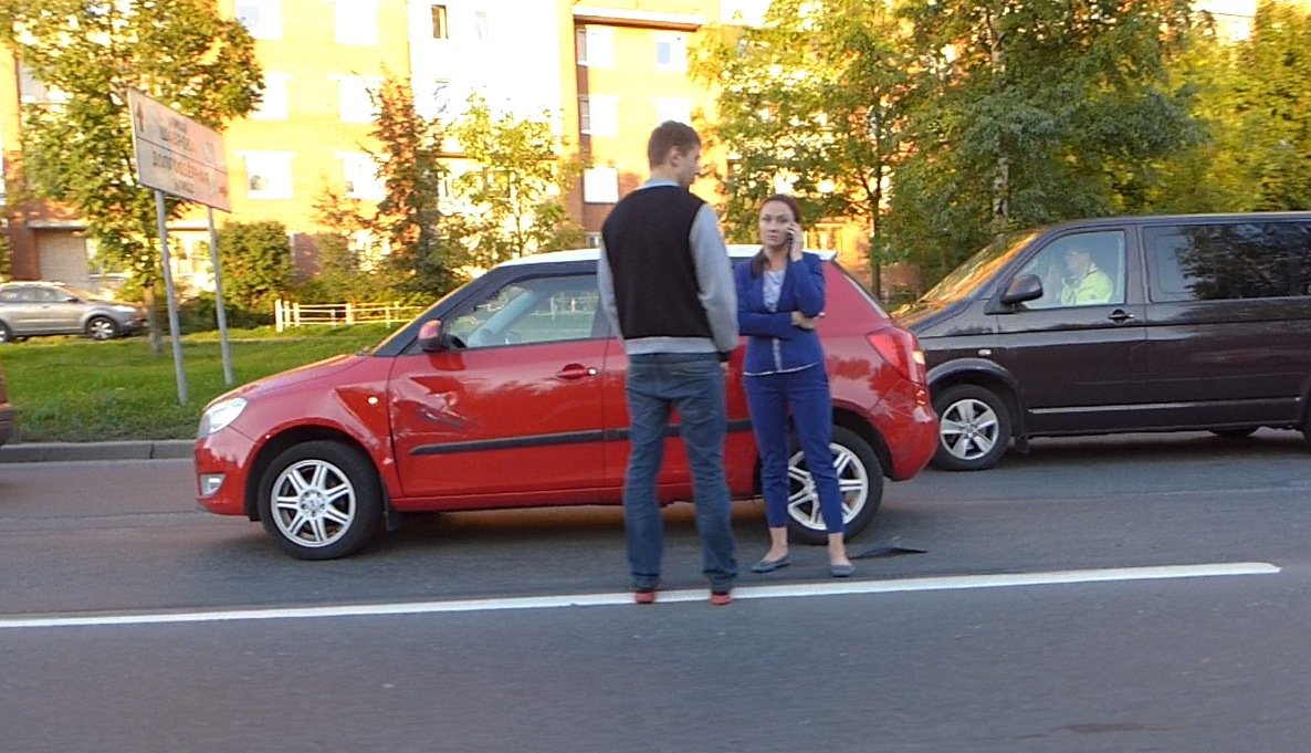 Возможно, правая передняя часть Фольксвагена подверглась удару другого автомобиля при повороте с Долгоозерной на Планерную? (повреждения не видны из-за ракурса сьемки), после чего машину выбросило на полосу встречного движения? А может быть ДТП как раз и случилось из-за потери управления водителем "Фольксвагена" из-за механического разрушения подвески от старости машины? (вырвало шаровую опору или лопнула рулевая тяга правого переднего колеса)? Далее видим автомобиль Skoda Fabia, получивший удар в левую водительскую дверь, а еще дальше по Планерной наблюдается стоящий здесь на "аварийке" автомобиль Hyundai Accent. Кто тут "весело проехал" непонятно. Кажется, никто не пострадал.