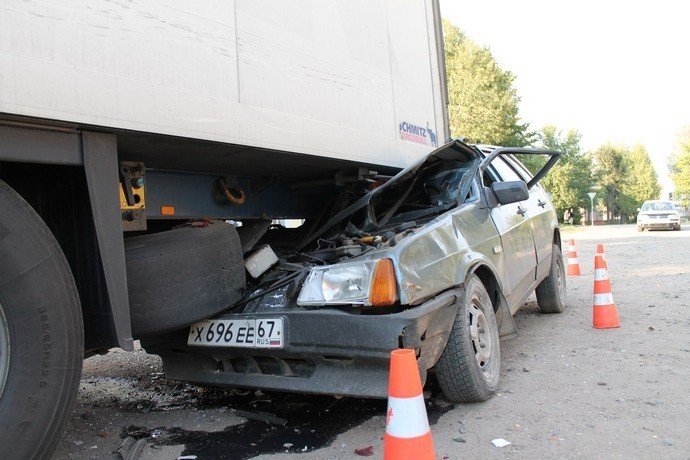 Пьяный молодой человек не имеющий водительского удостоверения, врезался в стоящую фуру
