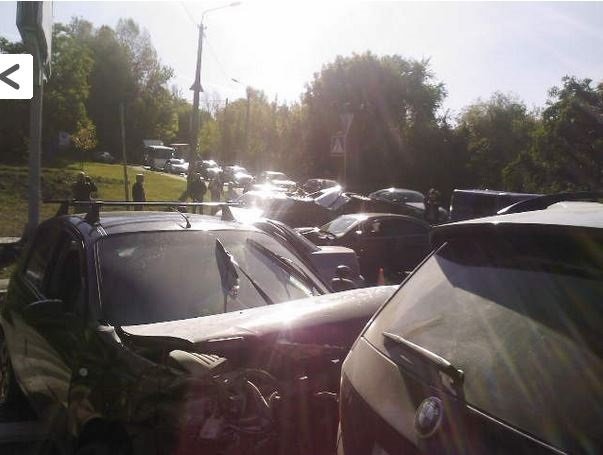 После удара KIA отлетела в сторону, где столкнулась с автомобилем Skoda. Последний перевернулся набок. В то же время Chevrolet вылетел на противоположную сторону проезжей части, где ударился о бровку и вылетел обратно на дорогу, где столкнулся с BMW. В результате масштабного ДТП в Киеве, образовалась пробка.