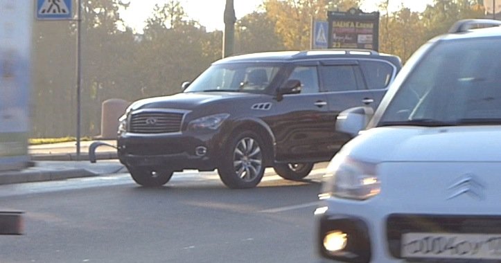Большой Infiniti оторвал бампер маленькому Mini Cooper