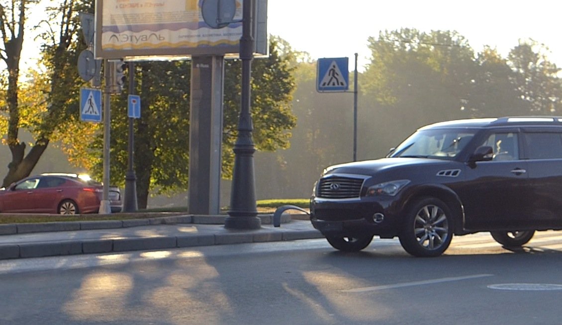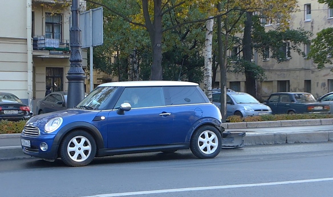 Утренняя авария на Камеенностровском проспекте на левом повороте с набережной реки Малая Невка (район элитного жилья) огромный внедорожник Infiniti, поторопившись выехать на Каменностровский, не заметил ехавший здесь автомобиль "Мини Купер".