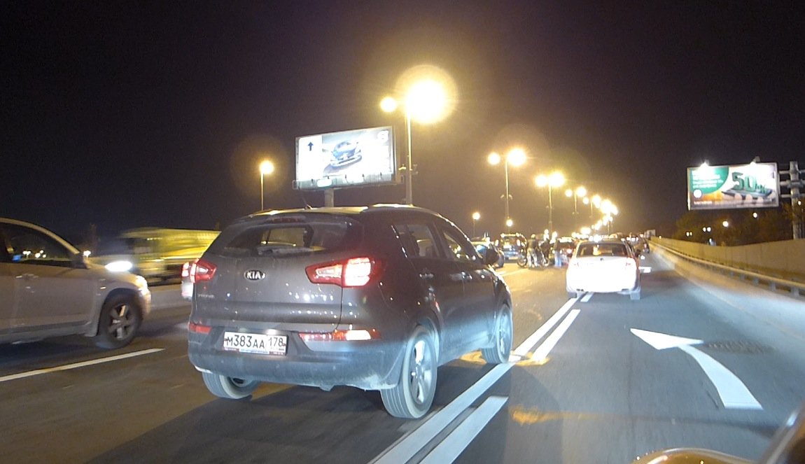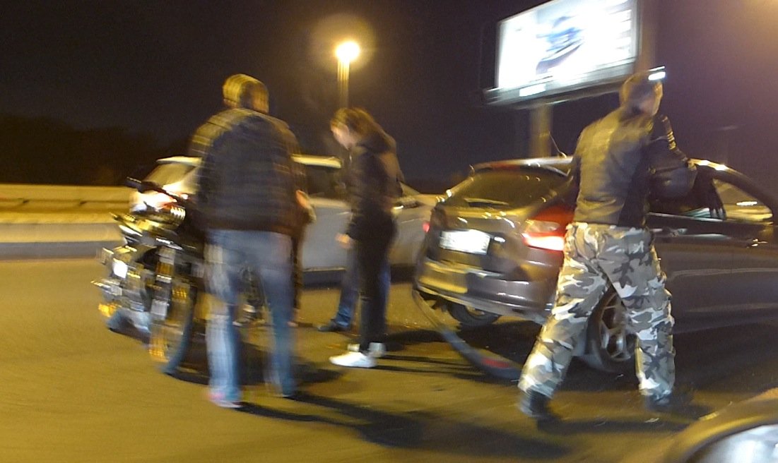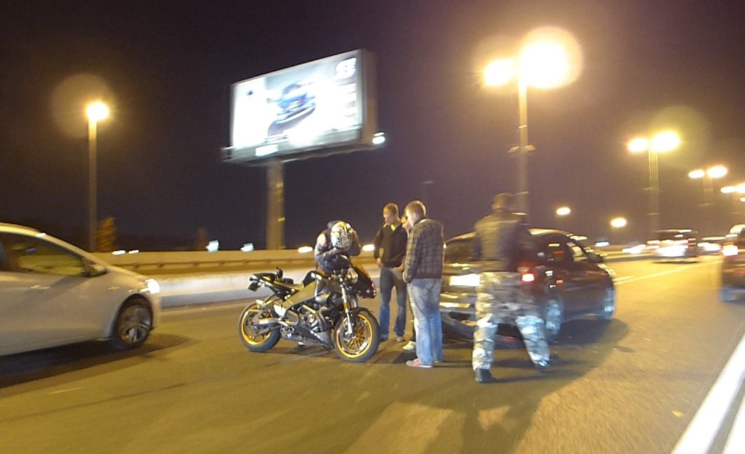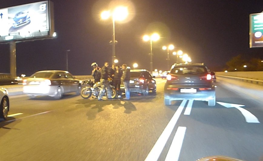 На путепроводе Ушаковской развязки Ford Focus врезался в мотоцикл (или наооборот)