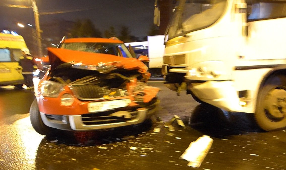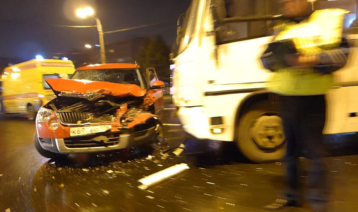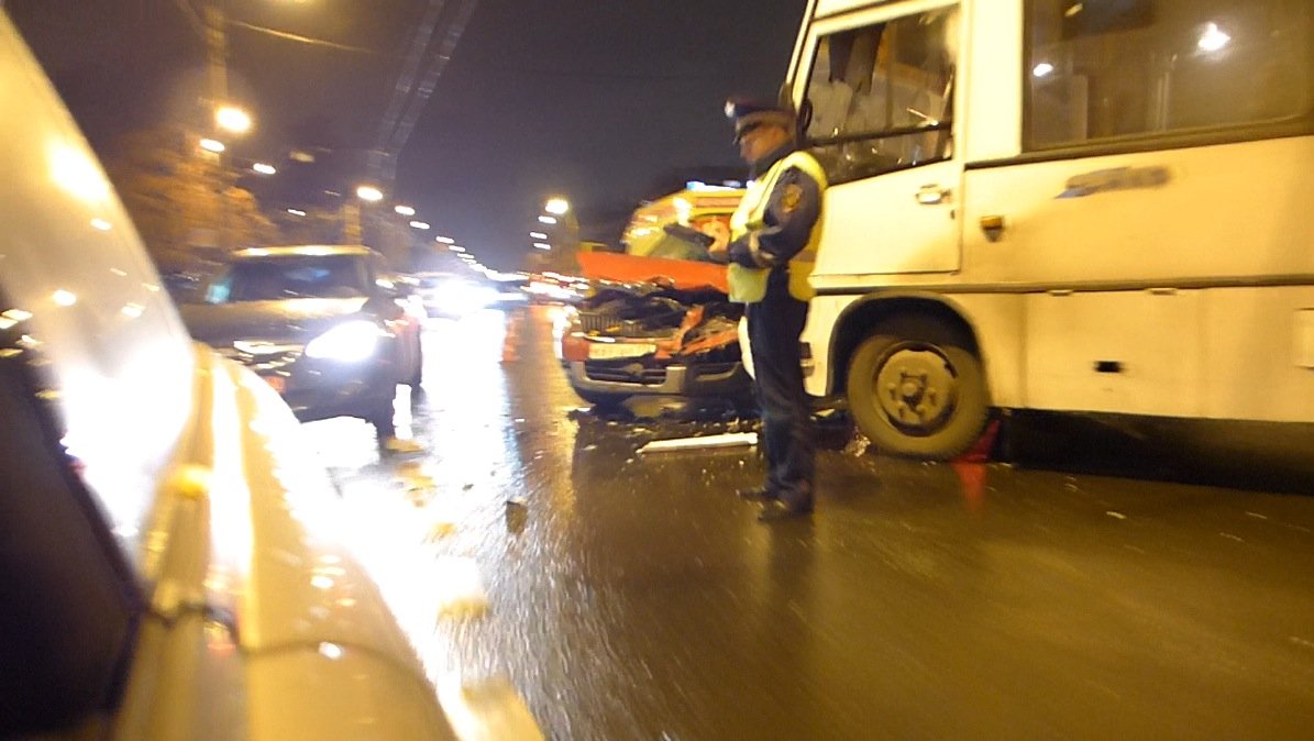 Skoda Yeti "лоб в лоб" столкнулся с маршруткой на проспекте Мориса Тореза