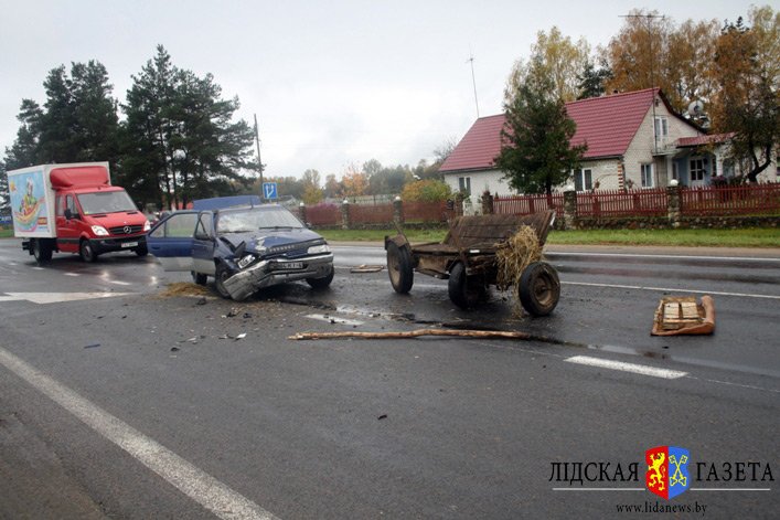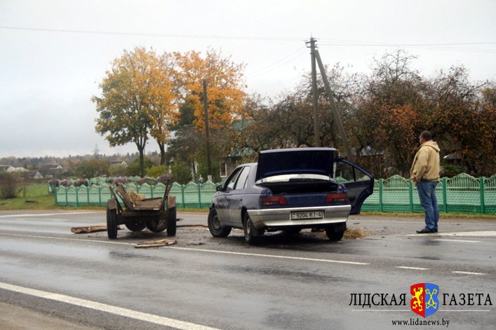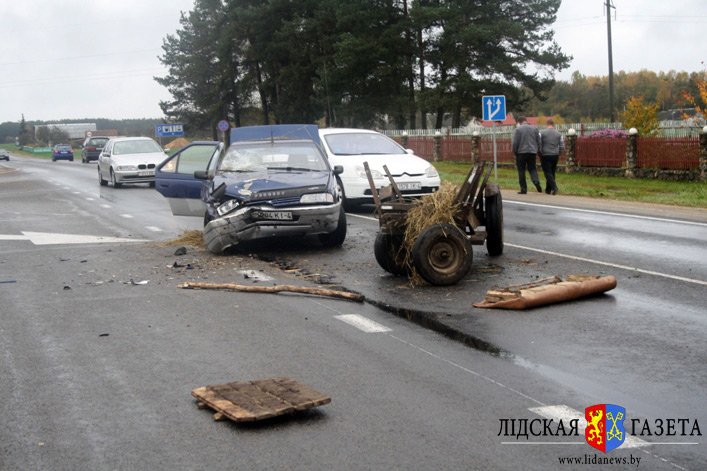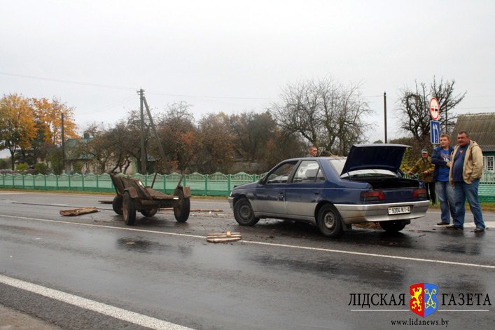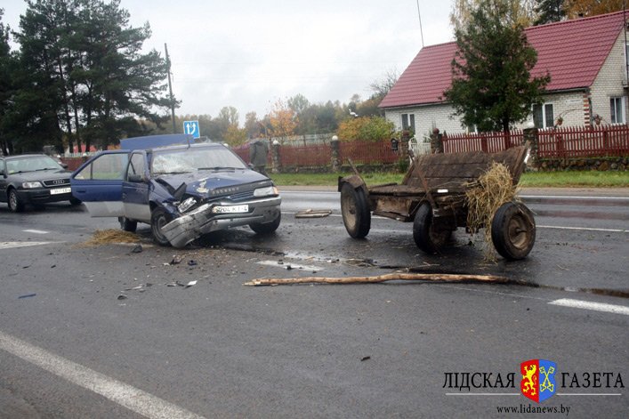 В Белоруссии, на выезде из города Лиды, напротив автозаправки в районе поворота на агрогородок Едки, легковой автомобиль наехал на гужевую повозку. По словам водителя «Пежо», гужевая повозка неожиданно съехала на его полосу движения.