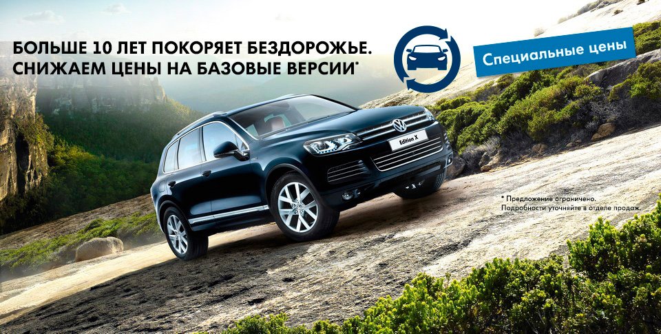 Touareg всегда привлекал внимание ценителей яркого стиля и технических инноваций. Теперь мечта об идеальном автомобиле в шаге от исполнения. Участие в программе Volkswagen по утилизации или программе Trade-inпозволит сэкономить до 90 000 рублей при покупке нового автомобиля.