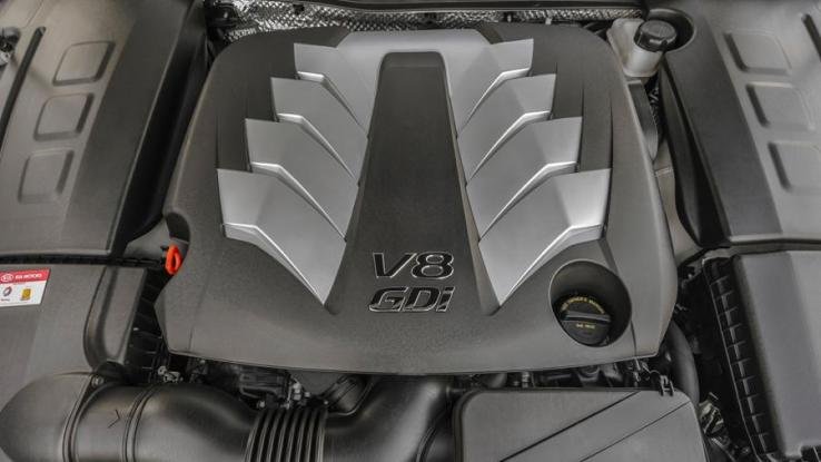 At launch the Kia K900 will arrive with the Hyundai Tau 5-liter V8 engine making 420 hp.