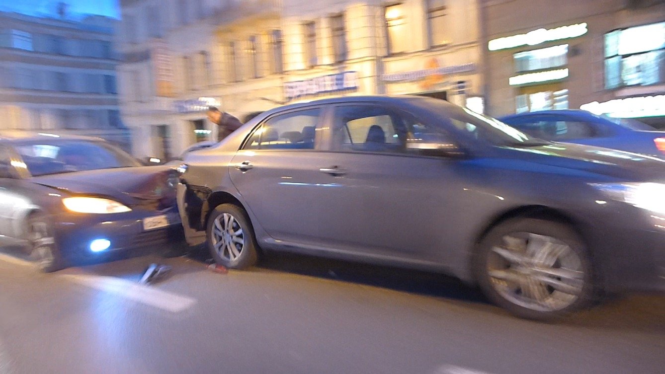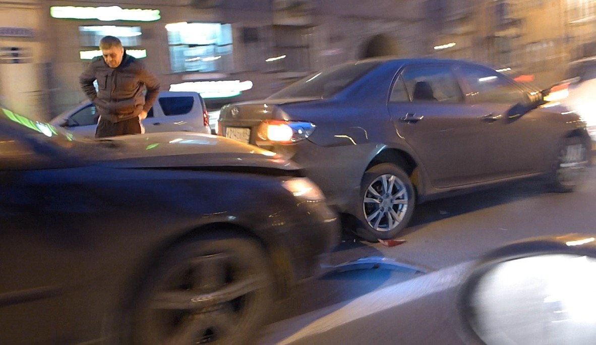 Очередная авария по причине несоблюдения дистанции и скоростного режима произошла в субботу вечером 25 октября на Каменноостровском проспекте. Как это почти всегда и бывает при участии более чем двух авто, третья машина врезается в ехавший впереди авто сильнее других.