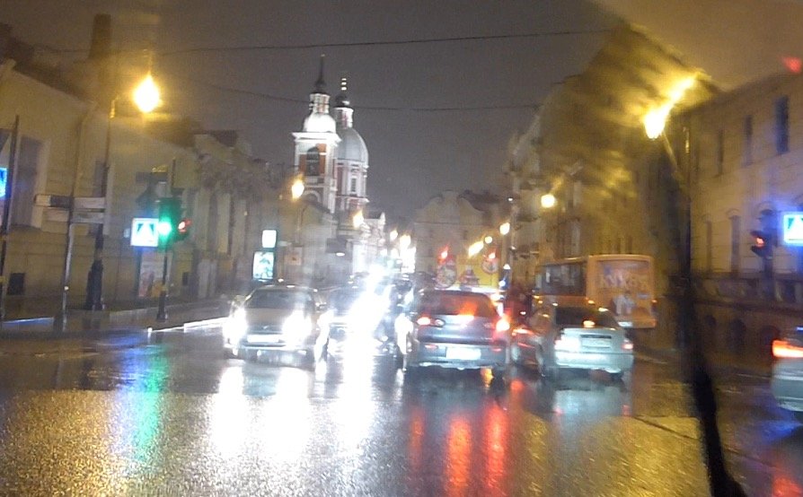 Вечернее ДТП в условиях плохой дождевой видимости на перекрестке улиц Пестеля и набережной реки Фонтанки вызвало большой затор в движении автомобилей. Судя по всему водители решили втиснутся в довольно узкое (из-за припаркованных машин по Пестеля) пространство, съезжая с Пантелеймоновского моста.